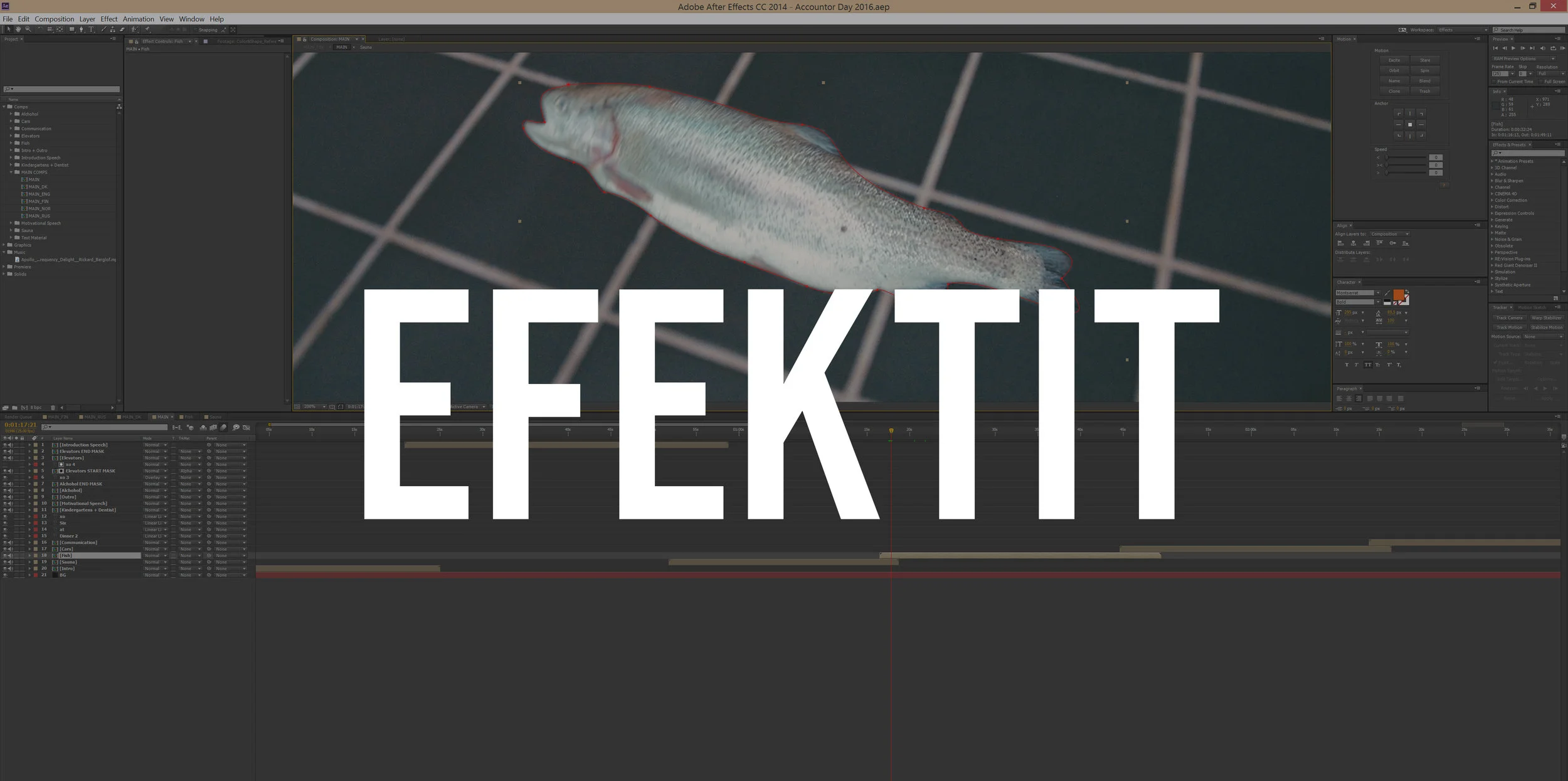 Kun videoon tarvitaan erikoisempia siirtymiä, erikoistehosteita tai liikkuvaa grafiikkaa, siirryn Adobe After Effectsin puolelle. Kyseinen ohjelma mahdollistaa äärettömän kirjon erilaisten efektien ja visuaalisten elementtien lisäämistä editoituun videomateriaaliin.